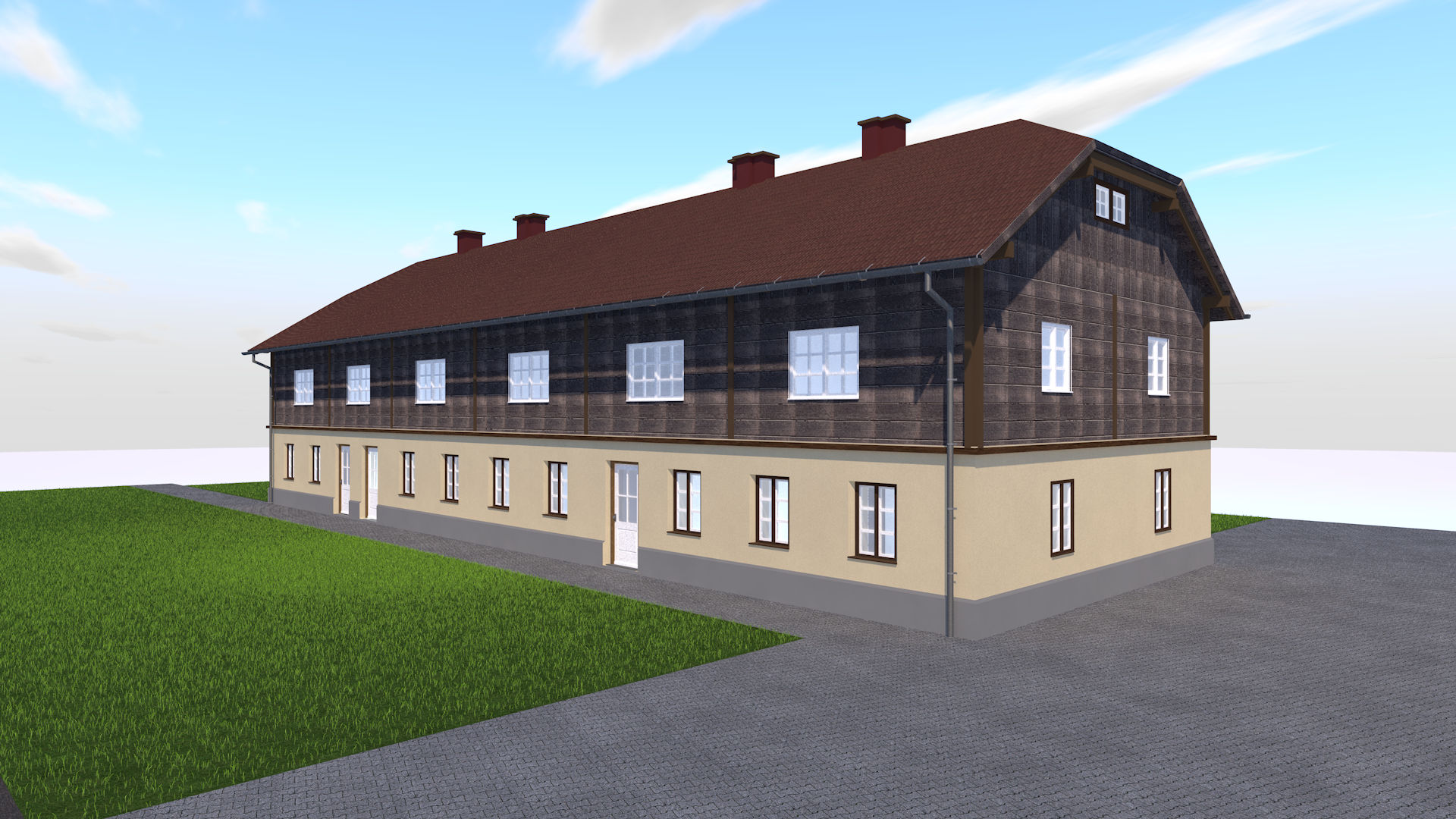Die WHA Sechshauserstraße besteht aus Sechs einzelnen Wohngebäuden mit Mietwohnungen im Stadtkern von Berndorf. Ziel war es, eines der sechs Gebäude mit unserem Leica RTC360 zu scannen und anschließend einen digitalen Zwilling mittels ArchiCAD zu generieren.